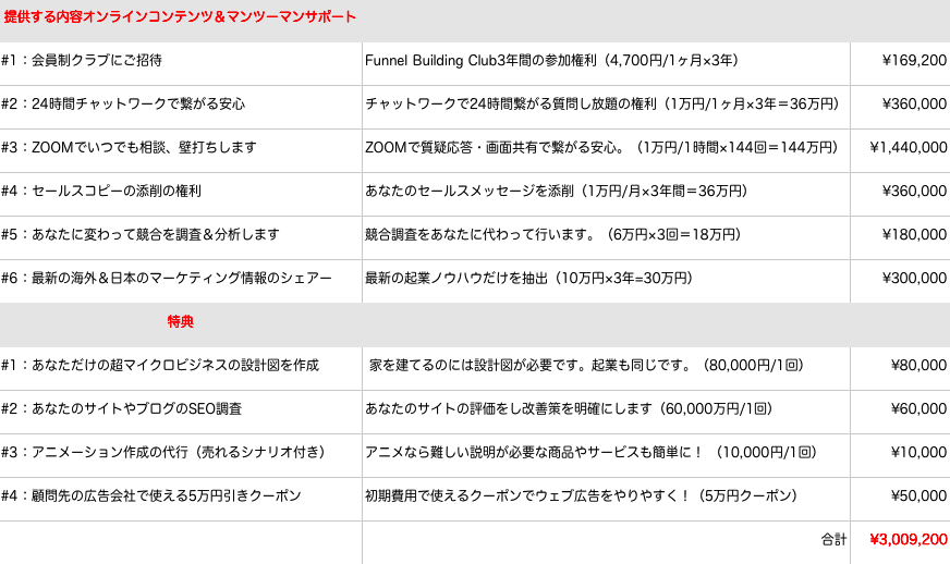実際に、サポートやコンサルティングをして行く中で、肌感覚として3年のサポート期間が必要だと感じ3年としています。また、正直に言えば、お客様の中で一定数の割合で、全くパソコンが苦手で、ホームページを作ったり、セールスファネル(売れる仕組み)をネット上に構築できない人がいますので、この方たちの構築代行で十分利益が上がるのも、もう一つの理由です。